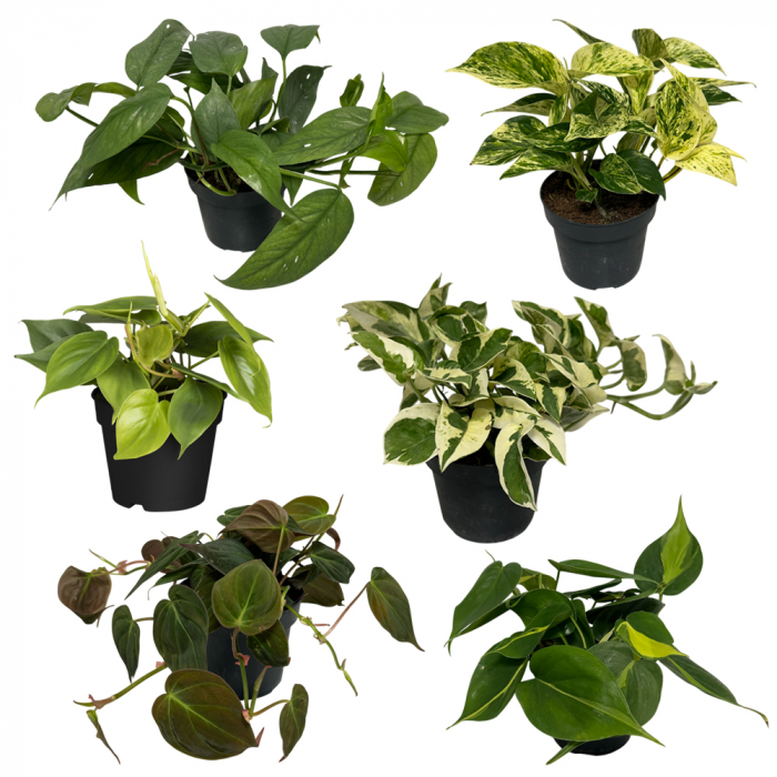 Sechs Pflanzen, ein grünes Statement: Das Große Efeututen-Set vereint drei beliebte Epipremnum-Sorten mit drei charakterstarken Philodendron-Arten. Gemeinsam bilden sie ein farbenfrohes, lebendiges Ensemble aus Hänge- und Kletterpflanzen, das jeden Raum aufwertet: pflegeleicht, robust und voller tropischem Charme.